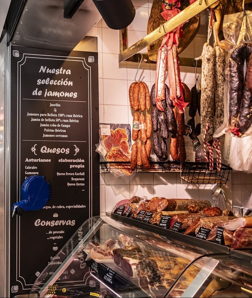 Comercio al por menor de productos de charcutería, quesos con especial atención a los asturianos, productos ibéricos destacando el jamón y paleta...